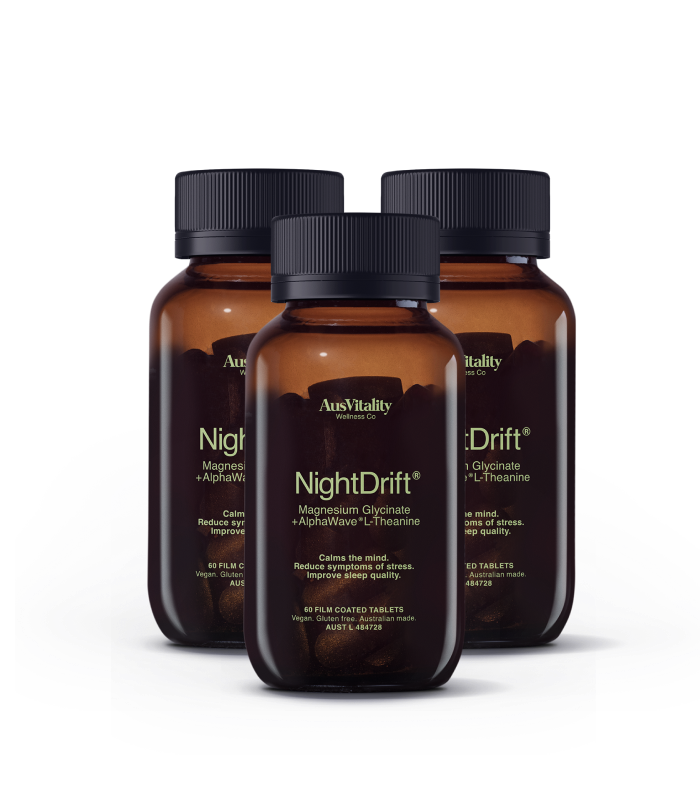 Regular price $49.95NightDrift® is an evidence-based supplement designed to help unwind, reset and optimise your night time routine. NightDrift® supports your nervous system through the wind-down process by relieving symptoms of stress and promoting deep sleep, without next day drowsiness.